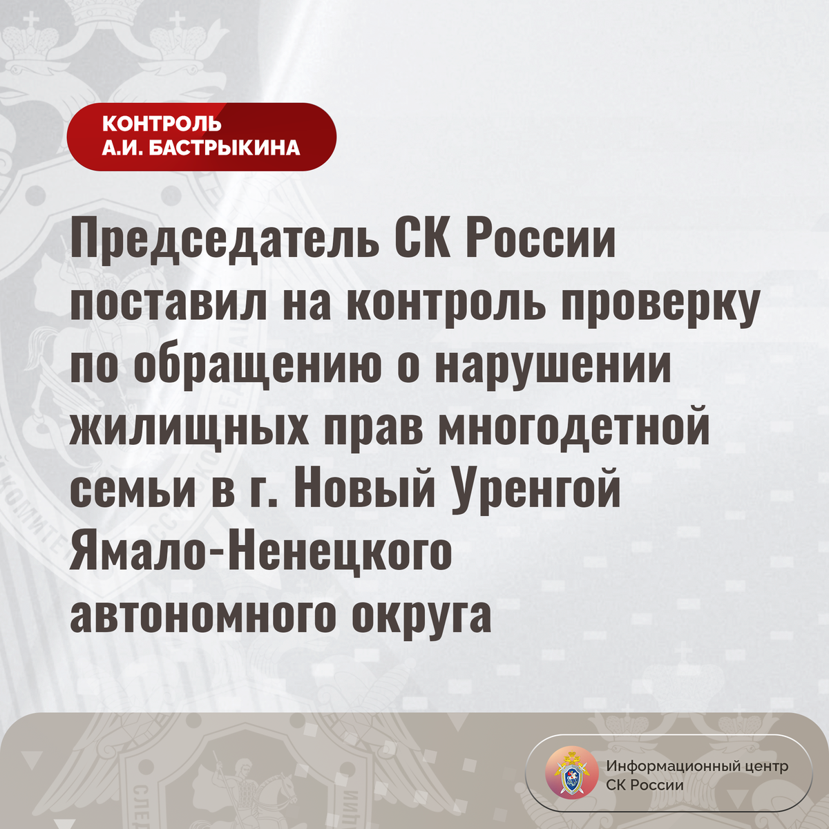 Председатель СК России поставил на контроль проверку по обращению о нарушении жилищных прав многодетной семьи в г. Новый Уренгой Ямало-Ненецкого автономного округа