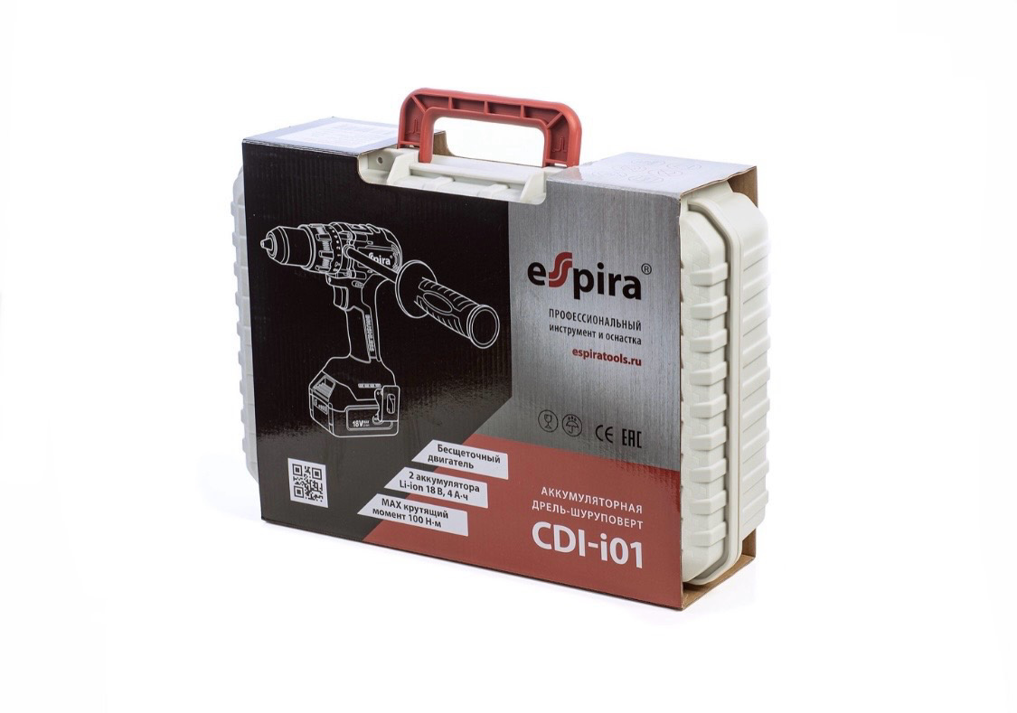 Продолжаю пополнять свой ручной инструмент. На этот раз приобрёл ударную дрель-шуруповёрт от фирмы Espira. До этого купил у них УШМ (болгарку) и применил её при создании уличной мойки из бочки, запись тут. В каталоге инструментов у Espira присутствует два шуруповёрта. Выбор в сторону более мощного был не случаен. Часто нужно что-то просверлить, что-то прикрутить, и для этого приходилось возить разный инструмент из одной квартиры в другую и на дачу. Надеюсь, этот инструмент сможет заменить как дрель, так и шуруповёрт, и надобность перемещать их с одной локации на другую отпадёт, всё будет всегда под рукой. Дрель-шуруповёрт поставляется в пластиковом кейсе, в комплекте идёт зарядное устройство с возможностью быстрой зарядки, 2 батареи 18В*4Ач, удлиненная боковая рукоятка, поясной крюк с крепёжным винтом и инструкция по эксплуатации. Всё выполнено качественно и внушает доверие. Масса шуруповерта составляет 2.3кг., есть возможностью навернуть боковой упор, что позволит с лёгкос