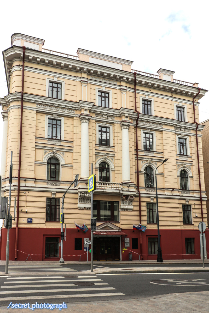 К примеру, идешь по Старой Басманной улице по направлению к центру и видишь на ее нечетной стороне совсем небольшого размера пятиэтажное здание с терракотовым низом и охристыми четырьмя этажами выше, парой белокаменных дорических полуколонн и стенкой-аттиком над карнизом.