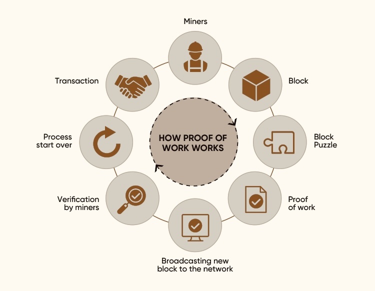 Proof-of-Work (PoW) — это механизм консенсуса, используемый в блокчейнах для подтверждения транзакций и создания новых блоков. Участники сети (майнеры) решают сложные математические задачи, и первый, кто решит задачу, добавляет новый блок в цепочку и получает вознаграждение. PoW обеспечивает безопасность и децентрализацию сети, но требует большого количества вычислительных ресурсов и энергии, что приводит к высоким затратам и экологическим проблемам. Примеры использования PoW включают Биткойн и Лайткойн.