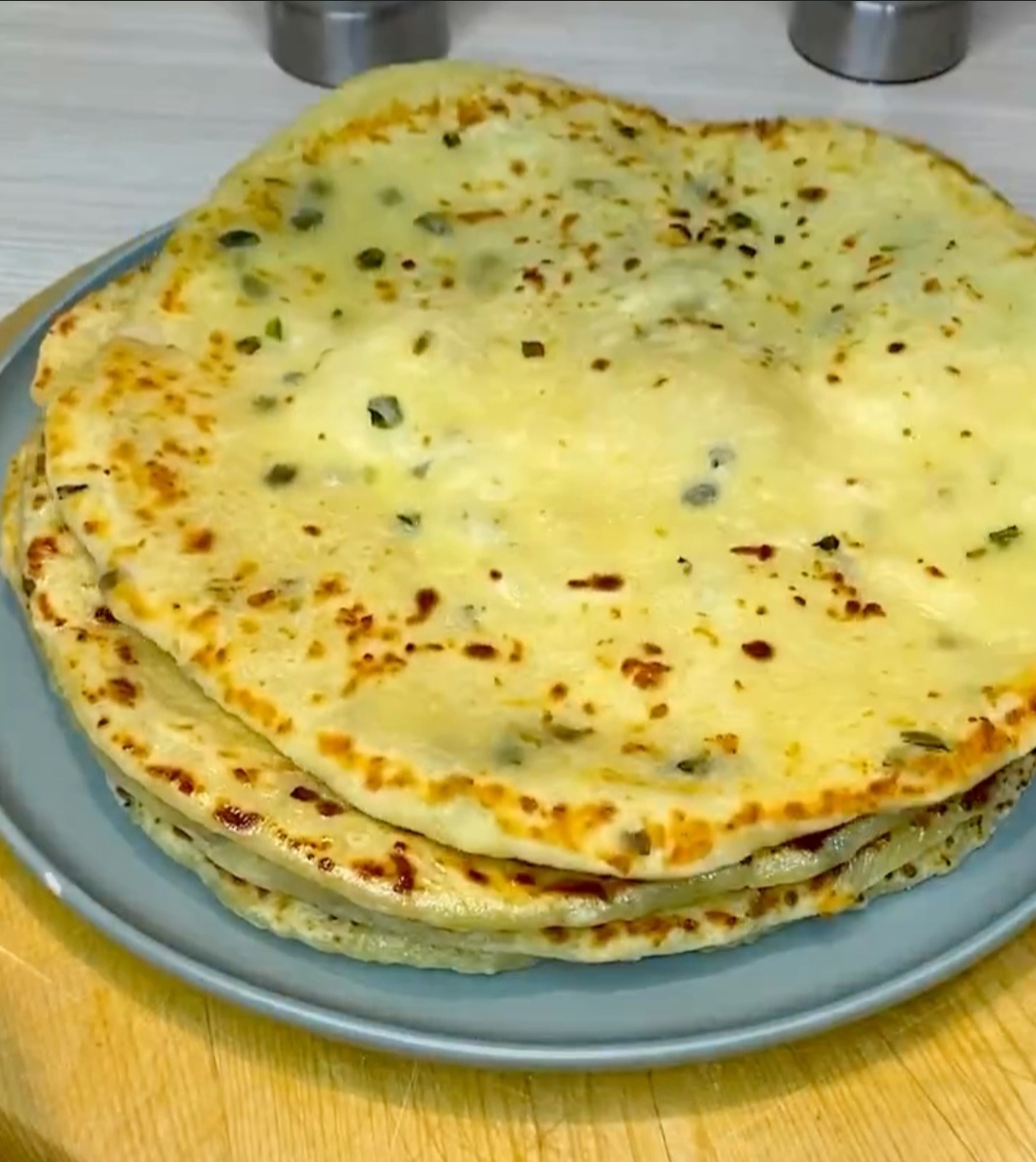 Если у вас остался вчерашний картофель, есть немного творога, кусочек сыра, приготовьте такие обалденные лепёшки Нам понадобится: ✔️4 шт. картофеля ✔️150 гр. творога ✔️230 гр. сыра ✔️400 гр. муки ✔️2 яйца ✔️1 ч.л. соли ✔️1 ч.л. разрыхлителя ✔️зелень Картофель проминаем в пюре Добавляем сюда 2 яйца, творог, небольшой кусочек тёртого сыра Добавляем небольшой пучок любой мелкорубленной зелени, чайную ложку соли и чайную ложку разрыхлителя. Все это хорошо перемешиваем. Затем добавляем 400 грамм просеянной муки и хорошо вымешиваем тесто. Даём тесту отдохнуть 30 минут, затем готовое тесто слегка раскатываем и делим на равные порционные кусочки. Каждый кусочек слегка раскатываем, но только не сильно тонко. Обжариваем на сухой сковородке или с подсолнечным маслом с 2 сторон под крышкой до золотистого цвета с каждой стороны. Подаём в горячем виде, предварительно смазав сливочным маслом, Подавать можно со сметаной или с любимым соусом 💞Приятного аппетита💞