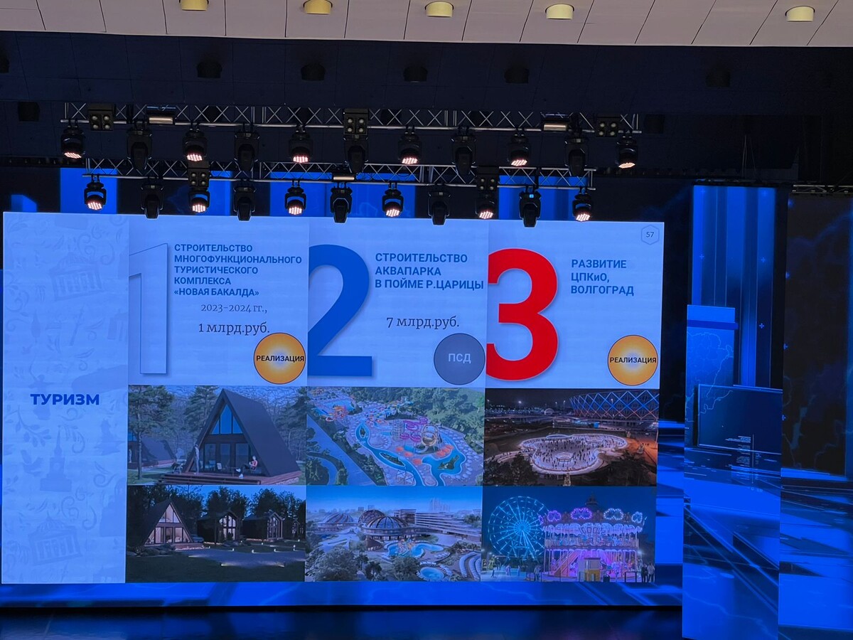 Волгоградцам показали будущий аквапарк в мини-масштабах на слайде, обозначив, что пока все находится на стадии проектно-сметной документации. Стоимость строительства аквапарка в царицынской пойме сейчас уже оценивается в 7 миллиардов рублей. — Строительство аквапарка — это объект, которому аналогов в России нет. Объем инвестиций — порядка 7 миллиардов рублей. Завершаются проектные работы, — коротко посвятил волгоградцев губернатор в будущую стройку на правой стороне поймы Царицы. Ранее строительство аквапарка мирового уровня в пойме в Волгограде оценивалось в 5 миллиардов рублей. Здесь можно посмотреть на проект планировки и межевания территории, который выносился на общественные обсуждения. В тот момент все планы приобрели вполне реальные очертания. Строительство аквапарка губернатор назвал сегодня дополнительным туристическим проектом в Волгограде. К ним относят еще два — строительство многофункционального туристического комплекса «Новая Бакалда» за 1 миллиард рублей со сроками реали