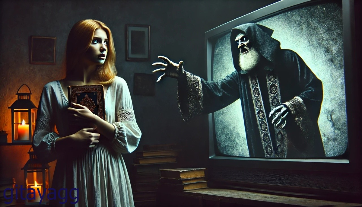 Через экран протянулась рука, держащая толстую книгу, которой, судя по виду, пользовалось не одно поколение, с уже подписанным автографом "Агате от меня", и девушка, действуя как в замедленной съёмке, медленно вязла подарок. Книга осталась в руках, а астролог, как ни в чём не бывало, продолжил интервью.