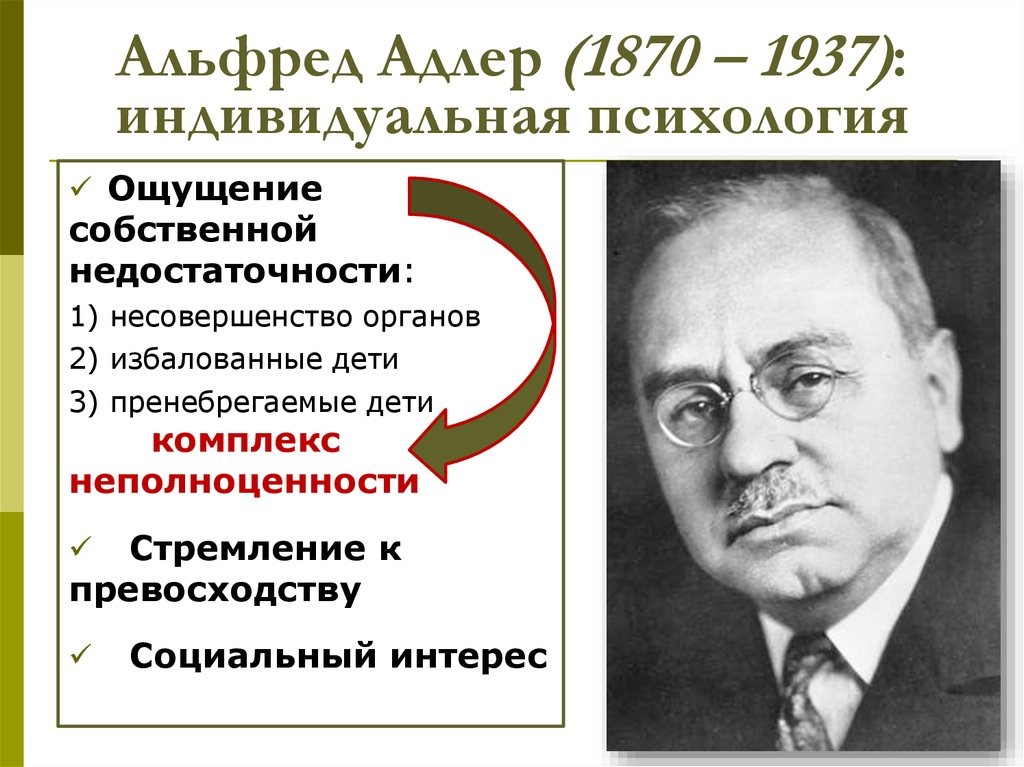 Однако, во-взрослой жизни именно он – комплекс неполноценности, становится двигателем прогресса и дает социальный рост, только с оговоркой, что достигнутая цель может оказаться ложной (верный критерий своей цели – удовлетворение и чувство счастья) и именно он может заставить человека вернуться в состояние беспомощного ребенка.