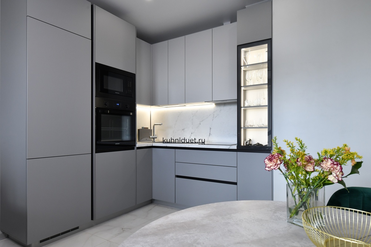 Угловая планировка кухни подразумевает расположение гарнитура и столешницы вдоль двух смежных стен, образуя угол. Этот вариант планировки обеспечивает максимальное использование углового пространства, что делает его особенно удобным для небольших и узких кухонь. Угловая планировка также позволяет создать удобную рабочую зону и обеспечить легкий доступ ко всем элементам кухни.