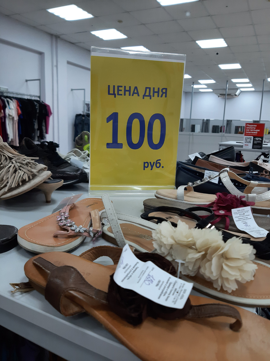 Доброго времени суток. Сегодня быстренько))) Ходила за очками (новыми), пока ждала курьера, сходила в Планету. А там: все по 100 По 20 руб. я ничего не купила(. Это остатки роскоши от продаж 1. Мне мала, а вот кофточку из хлопка я забрала - 100 руб. 2. Платье мне мало, дочке велико. 3. Джинсы новые, мне малы. Купила родственнице - ей не подошли. Дочке переедут))) 4. Еще одни - дорогой бренд, забыла сфотографировать - малы 5. А вот этот костюмчик я забрала. Все более сочное)))) Телефон устал от моих похождений по секондам))). свитер из эксклюзива - тепло, никто не обратил внимания штаны 6. купила 2в1 (юбка-трусы с утяжкой - 70 руб. 7. Дочке сандалики за 100 руб. 8. Дочке жакет - пиджак (мне больше нравится) Сегодня присмотрела цветок, но дочь против Портулак. На этом все. Сегодня был новый завоз. Ждите новые обзоры. С уважением, Татьяна.
