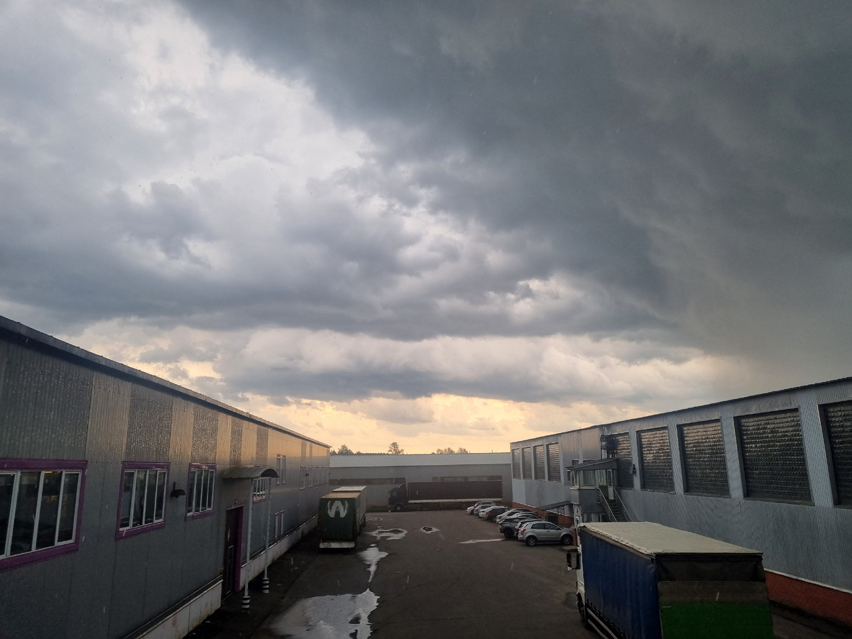 На 20 июня в Москве обещали грозы, ливни и даже смерч. Ливень действительно был, причём довольно сильный. Попала под него когда ехала на работу по М-1. По трассе в такую погоду ехать сложно. Хорошо, что работа не очень далеко. Вот это фото я сделала уже в 12:48. Мне показалось, что небо очень красивое и захотелось его запечатлеть А вот это фото спустя 3 минуты, в 12:51. За окном сильный ливень. По крыше ещё так сильно тарабанил! Помню, в детстве я очень боялась грозы. У нас в республике Мордовия иной раз был такой сильный гром, что казалось небо сейчас расколется. Мы жили в частном доме, сразу же отключали из розеток все электрические приборы, потому что техника может "сгореть". Были такие случаи у людей, а ещё у некоторых домов ветер шифер с крыш сносил. В квартире в грозу уже не так страшно. Только немного за машину, которая на улице. Когда возвращалась домой с работы, то на дороге валялись сломанные ветки деревьев. Дома сложила часть моей одежды в чемодан, довольно много поместилос