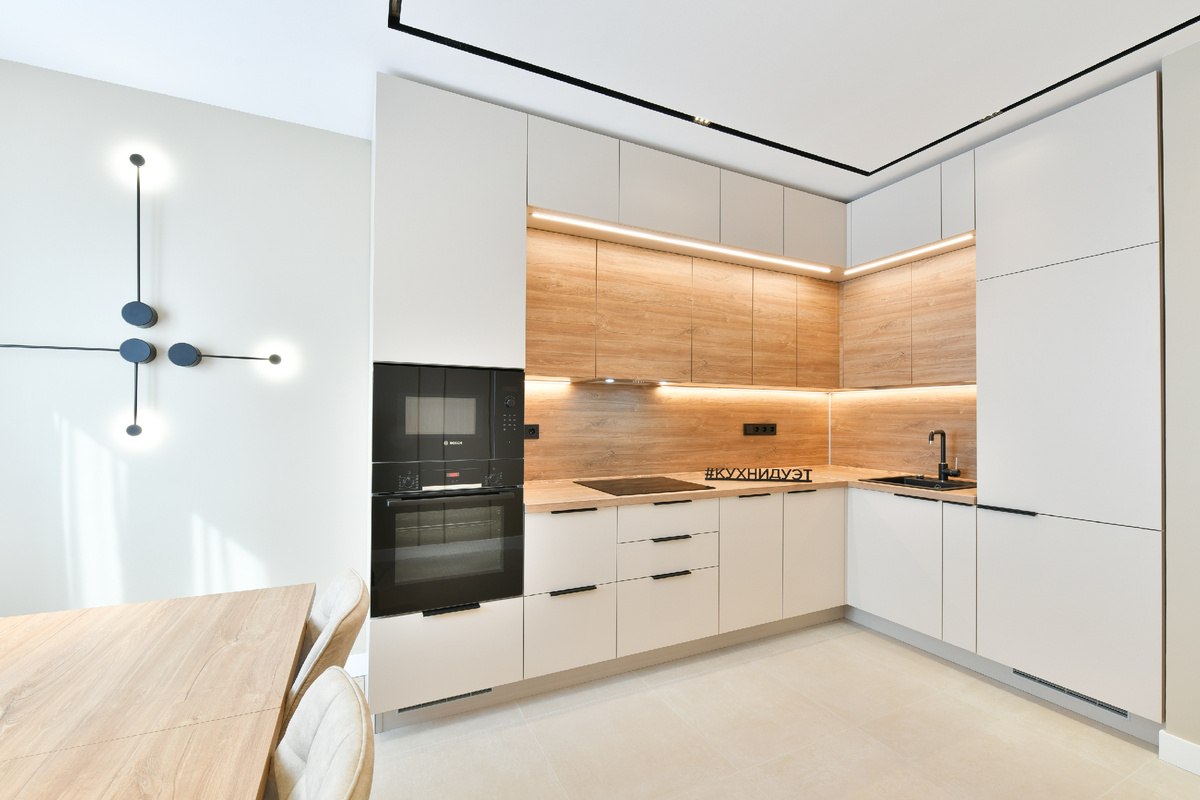 Удобная планировка кухонного пространства, оптимальное размещение мебели и качественные материалы создают условия для эффективной работы на кухне и уменьшают время, затраченное на приготовление пищи и уборку.
