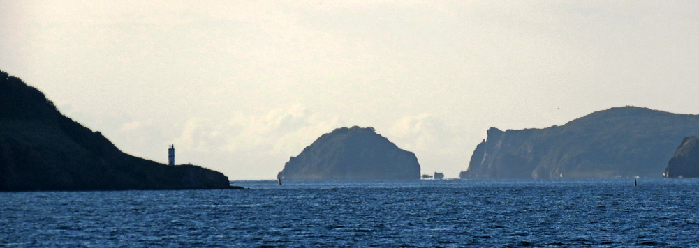 За ним - высокий остров Шкота и Русский, а ещё дальше - сопки Сихотэ-Алиня. В эту бухту мы пошли встречать рассвет, но прогадали - солнце встало из-за сопок (в данном случае - острова Клыкова), а за восходом непосредственно из моря в конце сентября надо ехать на остров Рикорда, а лучше в Хасанский район: