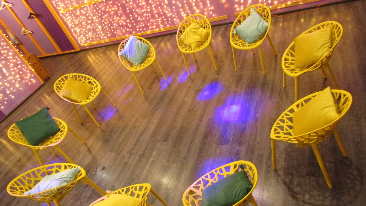 Наше текущее оснащение: 🧘♀️Коврики 10 шт. 🛋Удобные и легкие штабелируемые кресла 10 шт. 🛏Пледы 10 шт. 🧘♂️Сидушки (большие круглые подушки) 10 шт. 💤Подушки 45х45 10 шт. 💺Мягкие банкетки 2 шт. 🔍Зеркала во всю стену 3 метра высотой от пола. 🚿 Душевая кабина 🚾 Уборная ⛾Чайник, чай 💧Кружки 10 шт, питьевая вода с помпой. 🌌Неоновая подсветка RGB 💡 Гирлянды +умные гирлянды RGB 🔮 🎶 Светомузыка 🗄 Стелаж икея в раздевалке 👩💻 Стол большой раскладной икея 150х80, 🛎 Бумажные полотенчики, туал.бум., салфетки 📻 Колонки 3,5 штекер 🌬 вентилятор 📶 WiFi 📋 Флипчарт 💬 домофон 🤖 робот пылесос Список будет пополняться 🥳