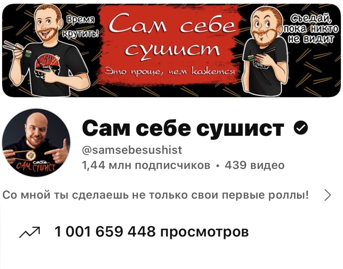 Спасибо Вам огромное дорогие, за МИЛЛИАРДЫ просмотров! ❤️ Сейчас и в ВК клипах уже 1,4 миллиарда просмотров и ещё со многими мы не знакомы, поэтому давайте это исправим Меня зовут Игорь. По профессии я повар, живу в Москве, и отработал в сфере суши более 20 лет. Закончил поварское училище в 2002 году и сразу устроился помощником повара в ресторан Планета Суши и с тех пор работаю в этой сфере. Работал в разных компаниях, доставках, кафе, ресторанах, рос от помощника повара до Брэнд Шефа, с должности которого я уволился летом прошлого года. Сам себе сушист родился относительно не давно, это конец февраля- начало марта 2021 года, в начале это были просто короткие видео под музыку. Далее по нарастающей, из комментариев я заметил что это интересно людям и многие готовят суши дома, и самое что интересное - не знают элементарных вещей и у меня появилось огромное желание донести простоту приготовления роллов. Моя цель передать вам свой опыт и знания, чтобы каждый кто захочет смог