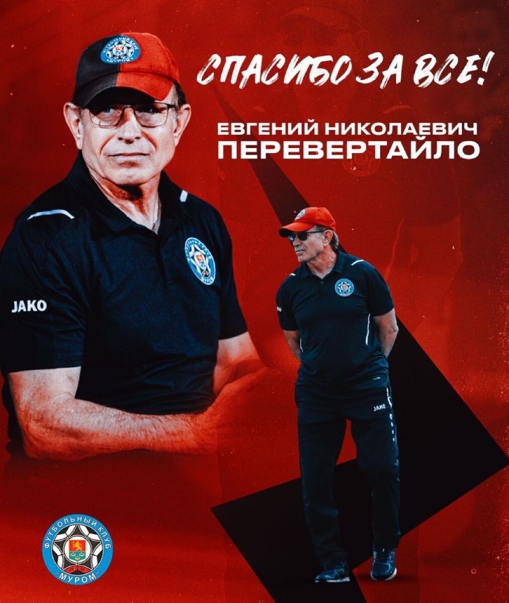 Футбольный клуб «Муром» благодарит Евгения Николаевича Перевертайло за профессиональную и плодотворную работу! «Мы говорим спасибо за исторические результаты для нашего клуба: - 2-е место во Второй группе Второй Лиги, вслед за «Ленинградцем» сезона 2022/23 - Выход в «Золото» Второй Лиги А - 4-е место в группе «Золото» Второй Лиги А осенней части 2023/24 Спасибо, Евгений Николаевич за три года, проведенные в нашем клубе и желаем успехов в дальнейшей карьере!», - говорится в сообщении на официальной странице футбольного клуба «Муром»