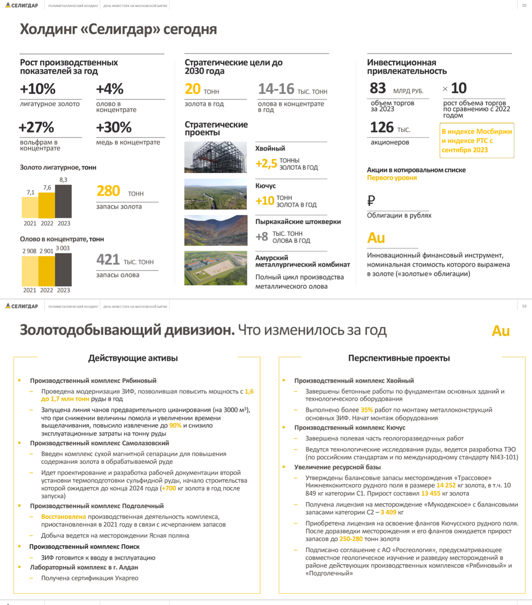 Любителей долгосрочных инвестиций в драгоценные металлы порадует уже третье пришествие знакомой бумаги - биржевая цена золота будет приправлена купонным доходом в 5,5%, оно и неплохо. Близкие родственники - первый $RU000A1062M5 и второй $RU000A106XD7 выпуск соответственно. Перед покупкой загляните и в их стаканы :) У компании в активном обороте биржевые облигации на 10 миллиардов рублей (погашение в октябре 2025) и около 19 миллиардов в двух вышеупомянутых золотых бумагах, которые дали неплохо заработать владельцам. Но даст ли новинка? Большая презентация к выпуску имеется, прилагаю к изучению.