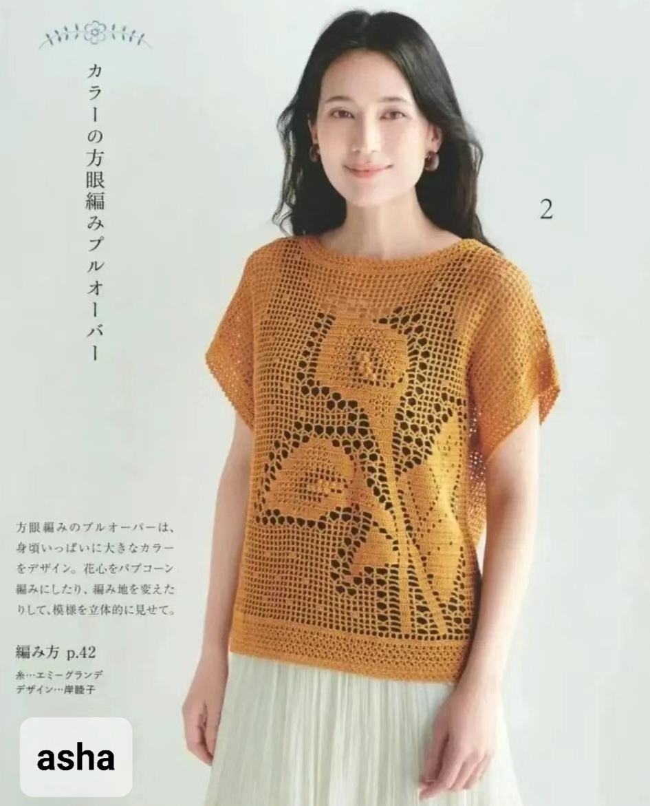 Три вязаных топа из японского журнала, что бы вдохновиться на текущее лето.