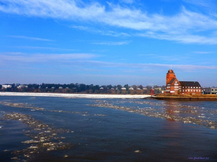 Лёд на Эльбе Лёд совершенно изменил вид на реке Под синим небом MOL EMPIRE Контейнеровоз MOL EMPIRE & PILOT К пристани Контейнеровоз идёт в порт Уходящий вдаль В ожидании парома На берегу люди кормят птиц Ледяные торосы. Вдали порт заправки кораблей Провожая корабли Dampf-Eisbrecher STETTIN Ледокол Штеттин, работающий на угле, спущен на воду в 1933 году. С 1982 года Штеттин признан техническим памятником и стал музеем. Берег Эльбы. Вид на пляж и жилые дома Порт заправки кораблей