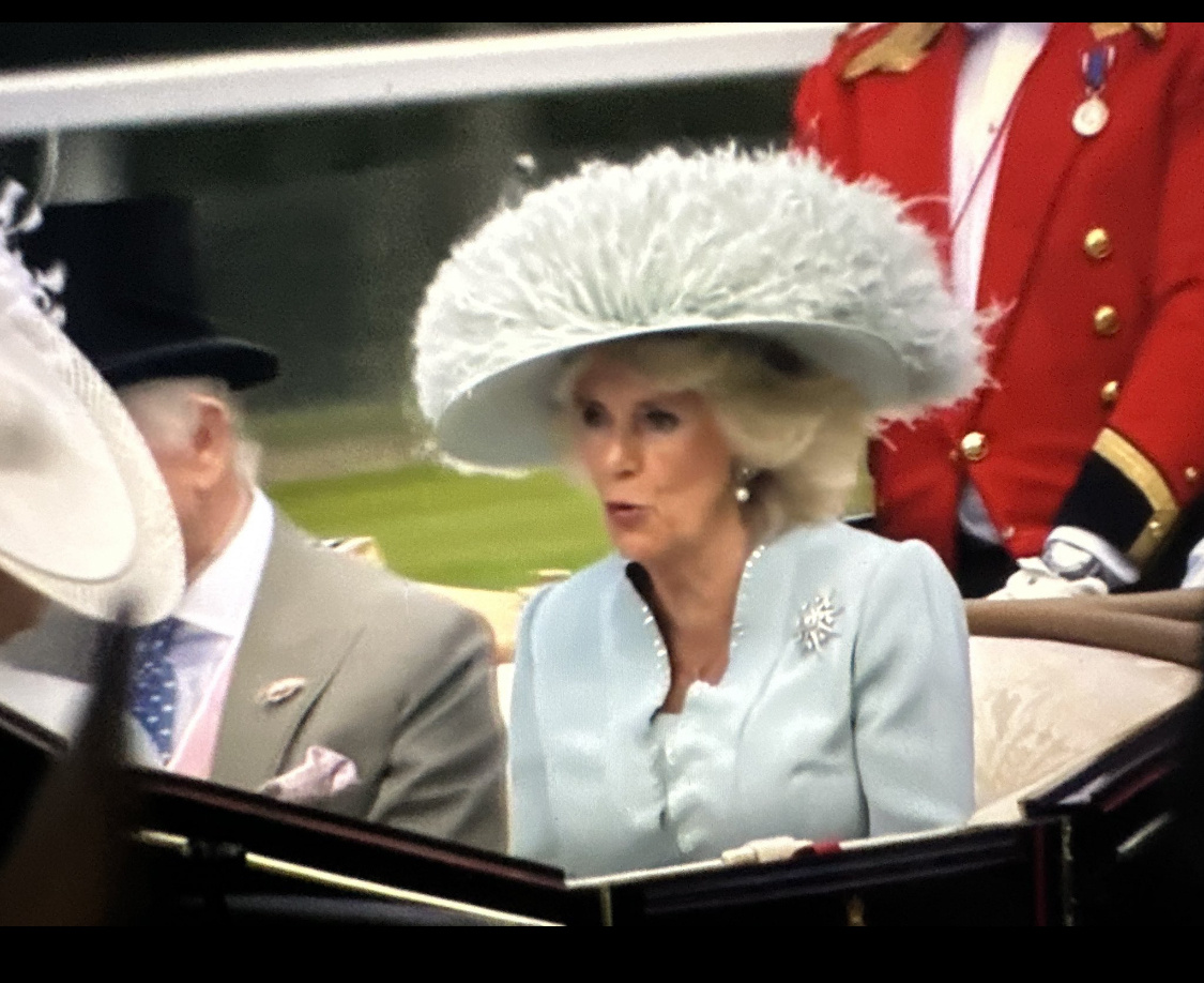 Десять минут назад на момент написания заметки, королевский экипаж номер один вышел на знаменитый круг в Аскоте. Королева решила показать, что она умеет присоушиваться к критике: на ней весьма интересный наряд нежно-мятного оттенка от Анны Валентайн. Шляпа со страусиными перьями создана волшебником Филиппом Трейси. И брошь- очередной раритет королевской шкатулки, королевская брошь Jardine. Один из молодежных экипажей- пары принцесса Беатрис и Эдоардо Мапелли Моцци и леди и лорд Фредерик Виндзоры! Продолжение следует ...