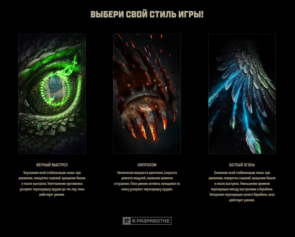 Разрабы анонсировали боевые умения тяжелых танков 11 уровня. Улучшение всей стабилизации танка: при движении, поворотах ходовой, вращении башни и после выстрела. Уничтожение противника ускоряет перезарядку орудия до тех пор, пока действует умение. Увеличение мощности двигателя, скорости ремонта модулей, снижение времени оглушения. Пока умение активно, попадания по танку ускоряют перезарядку орудия. Снижение всей стабилизации танка: при движении, поворотах ходовой, вращении башни и после выстрела. Уменьшение времени перезарядки между выстрелами в барабане. Ускорение перезарядки целого барабана, пока действует умение. Как вам абилки? * Следующее обновление 25.06.