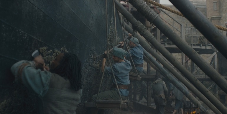 Внезапно на пирсе появляется Корлис и объявляет зрителю, что этот вот эталонный корабль каким-то чудом только что вернулся со Ступеней, едва дошел.