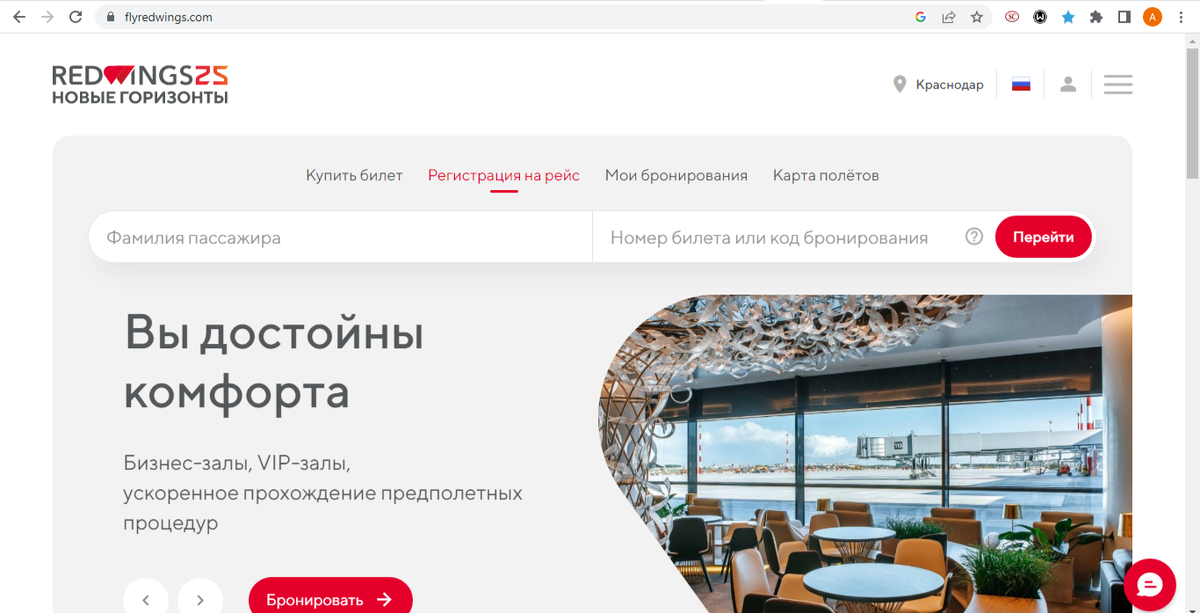 Как зарегистрироваться на рейс авиа компании Red wings?