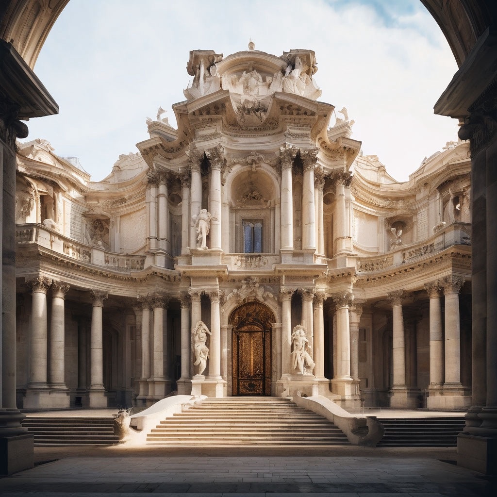 - Ордерная система: строгая система вертикальных (колонны, пилястры) и горизонтальных (антаблемент) элементов, создающая ощущение гармонии и величественности.
