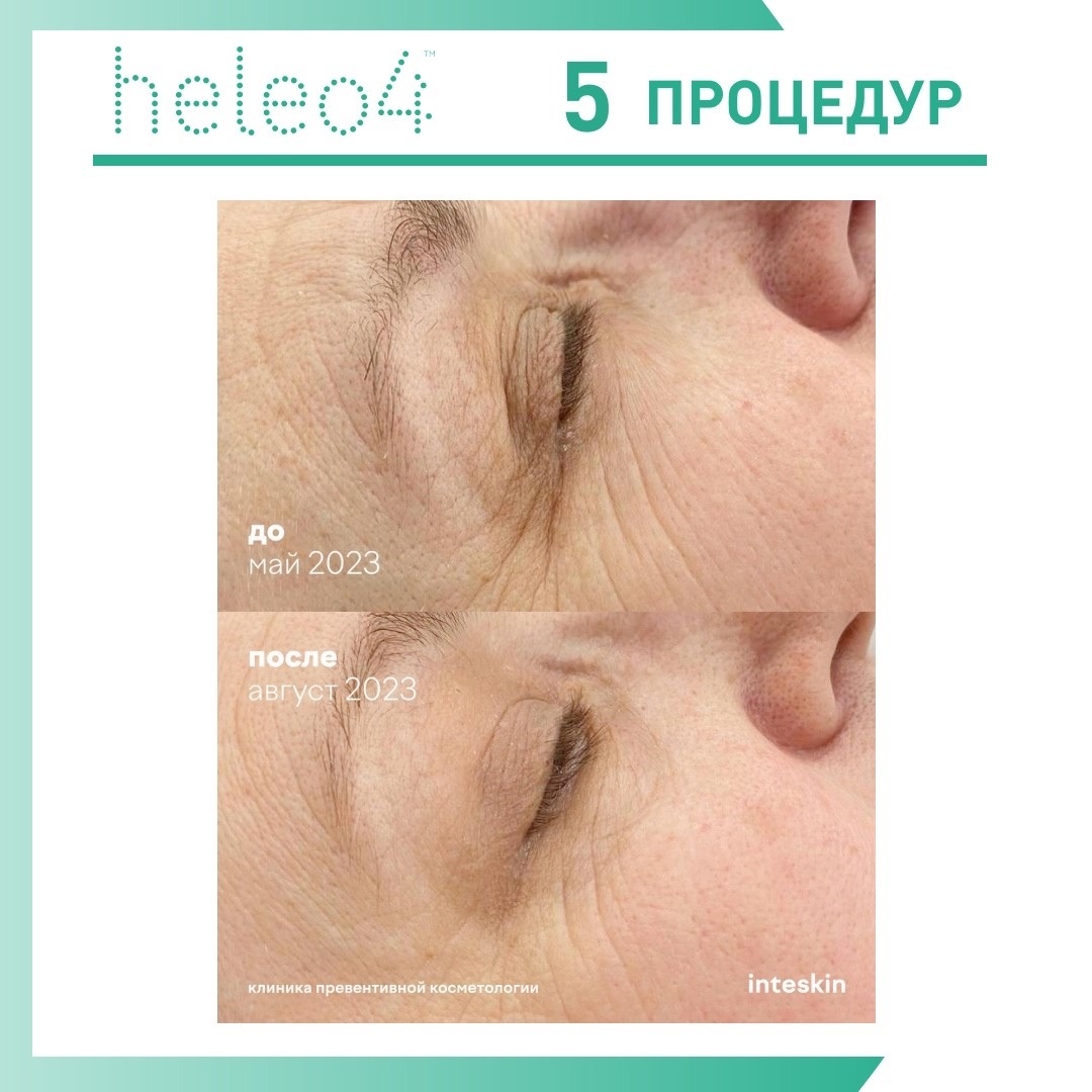 Сегодня мы расскажем о впечатляющих результатах, которые можно достичь с помощью процедур Heleo4 и DERMADROP TDA. Этот комбинированный курс обеспечивает глубокое омоложение и улучшение состояния кожи без инвазивных вмешательств. Работа клиники Inteskin Был назначен курс из 5 процедур HELEO4 по протоколу 5B25R10Y и 3 процедур DERMADROP TDA. Эта комбинация была выбрана для обеспечения глубокого увлажнения, питания кожи и стимуляции процесса регенерации. После курса процедур кожа вокруг глаз пациентки стала заметно более увлажненной и упругой. Мимические морщины стали менее заметными, что добавило свежести и молодости ее внешнему виду. Цвет лица стал более ровным и здоровым. HELEO4 в сочетании с DERMADROP TDA доказали свою эффективность в борьбе с возрастными изменениями кожи. Эти процедуры рекомендованы для тех, кто хочет бороться с морщинами, сухостью кожи и снижением тургора.