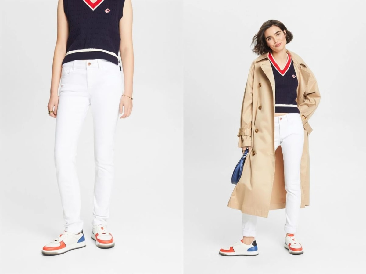 Белые джинсы на фоне классического денима словно становятся эксклюзивными: их носят в теплое время года и при хорошей погоде без осадков, поэтому они ассоциируются с летом, солнцем и беззаботностью. Модные блогеры и дизайнеры солидарны во мнении, что белый верх и белый низ из денима – классная свежая модная идея. В теплые солнечные дни вы найдете применение такой базовой модели, поэтому в сегодняшнем обзоре Swjournal.ru собрал идеи образов, которые подскажут, с чем носить белые джинсы сейчас. В истории моды такие модели стали популярны в послевоенную эпоху, когда в 1960-е популярным фасоном оказались прямые джинсы Levi’s с высокой талией, в 1970-е их сменил клеш, а затем появились и белые джинсы-бананы. В этом году актуальны фасоны денима предыдущих модных эпох, кроме вариантов узких брюк. Если вы ищете новую пару на лето, то стоит рассмотреть все модели, за исключением скинни: прямые и широкие, расклешенные и карго, с низкой посадкой или с высокой талией. Так называют сочетание низа и