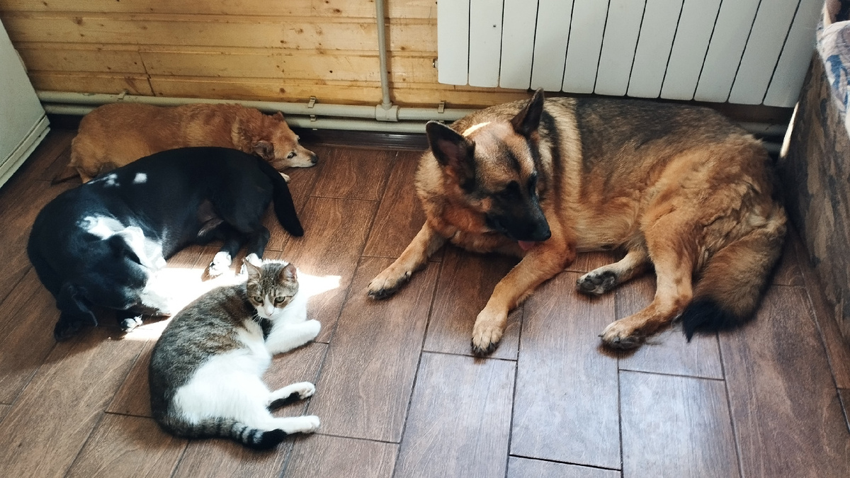 Даже Фунтик, которого не загонишь в дом, сегодня решил поспать дома. Кто их разберёт, что у них в голове.