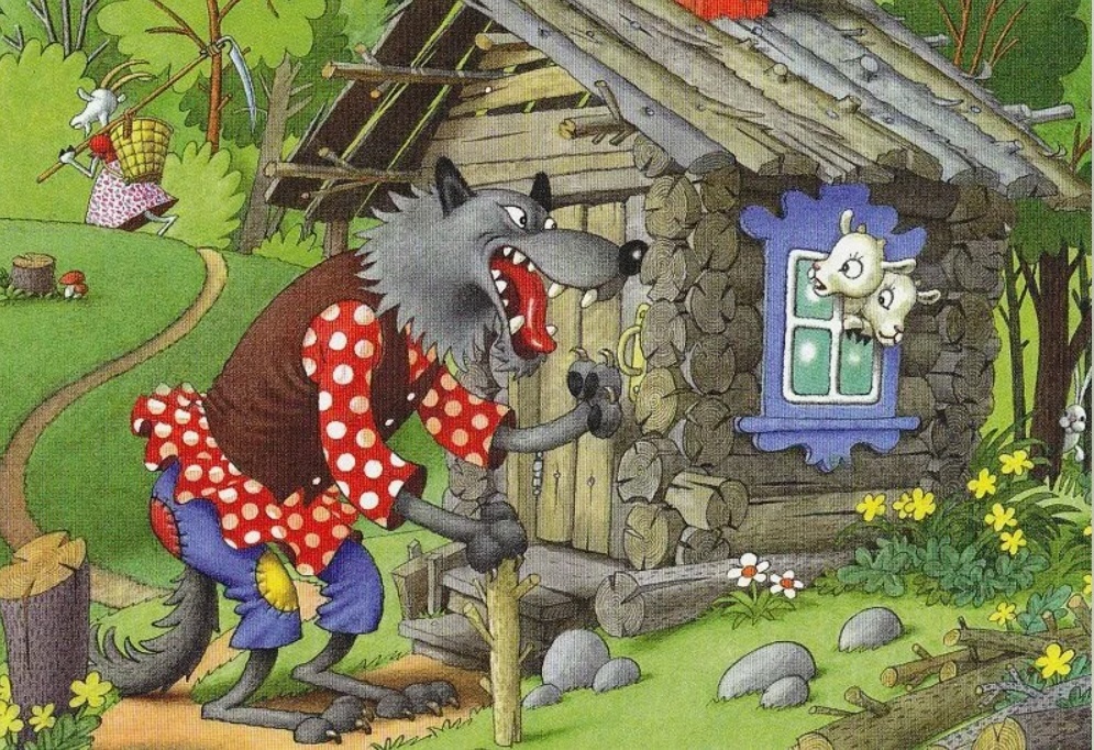 ГЛУПОГО ВОЛКА ДАЖЕ НЕ ВОЛНОВАЛО , ЧТО КОЗЛЯТА ТОЛЬКО ЧТО РАССТАЛИСЬ С МАМОЙ, ОТПОЕННЫЕ МОЛОКОМ И ОН ПРИПЕРСЯ СЛИШКОМ РАНО, НУ СРАЗУ ПОСЛЕ ЕЕ УХОДА.(.А КАПКАН НА ВОЛКА ПОСТАВИТЬ У КОЗЫ УМА НЕ ХВАТИЛО…ДОМ ТО ПОСТРОИТЬ СУМЕЛА)