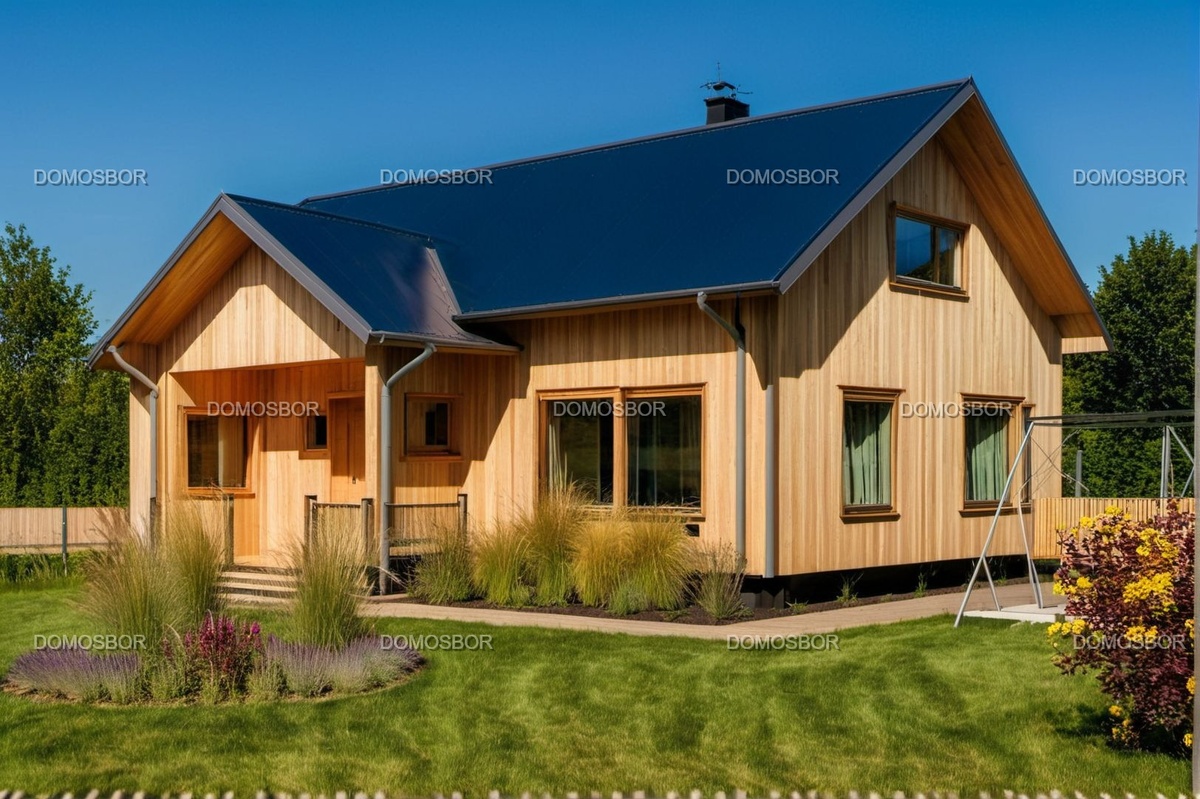 Жизнь за городом становится всё более привлекательной для современных людей, уставших от суеты мегаполисов. Чистый воздух, простор и близость к природе — всё это способствует улучшению физического и психического здоровья. С загородным домом вы получаете шанс создать собственный уютный уголок, где можно наслаждаться тишиной и спокойствием вдали от городского шума и стресса. О технологии: В деревянном домостроении СЛТ-панель (CLT) считается относительной новинкой. Впервые этот материал стали применять в середине 90-х годов прошлого века. Относится он к многослойным. Панель состоит из ламелей, просушенных до 12% влажности, склеенных и спрессованных между собой крест-накрест, простроганных и отшлифованных. Вертикальные увеличивают несущую способность, горизонтальные придают продольную жесткость. Несмотря на достаточную дороговизну новинки, она активно востребована, поскольку: О проекте: Предлагаем Вашему вниманию рассмотреть строительство одноэтажного дома из CLT панелей с такими особеннос