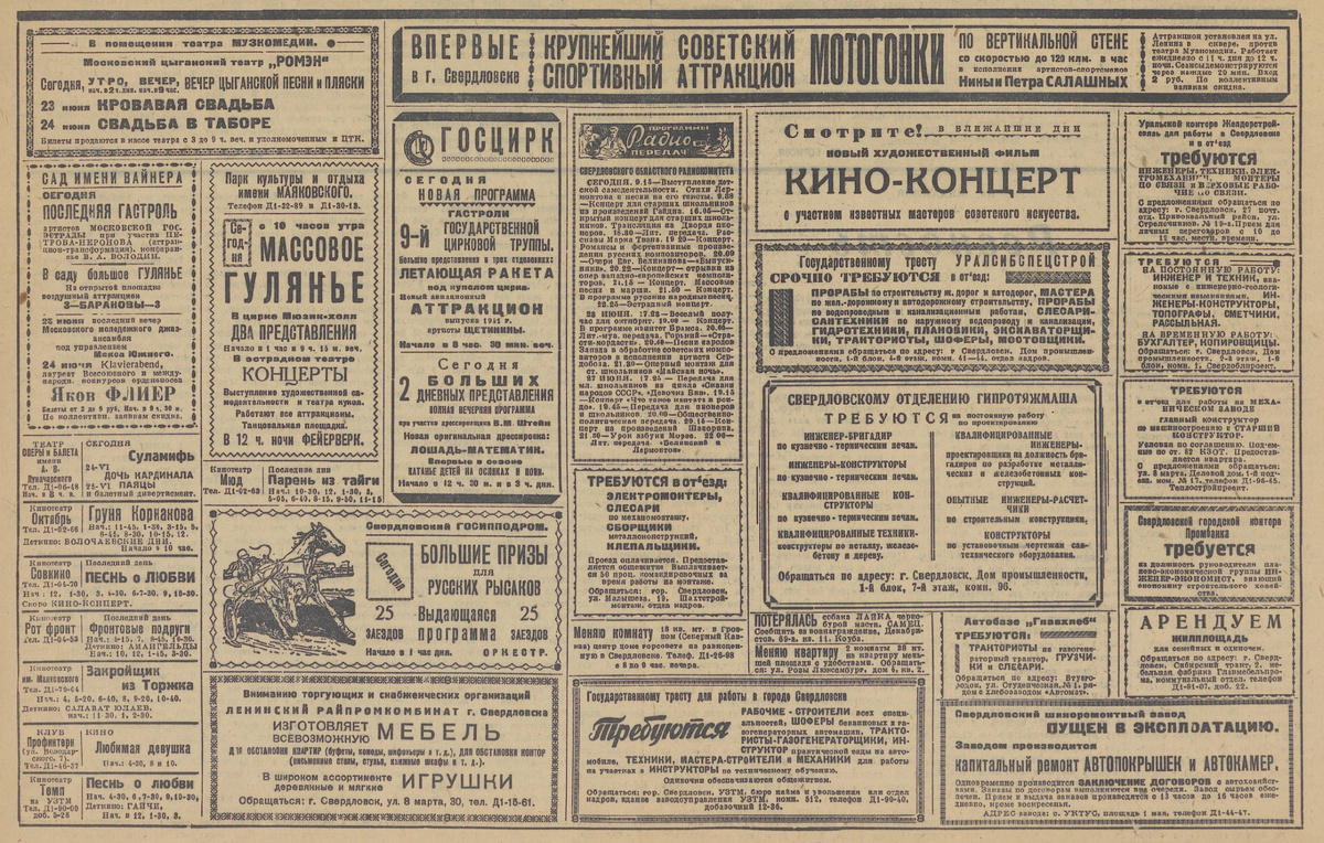 Редакция готовила воскресный выпуск заранее, и он еще пронизан мирной жизнью. Заслуги заводчан и колхозников. Забота о пассажирах трамваев (ради безопасности на передних вагонах установили боковые зеркала). Партийный отчет. Помощь от предприятия подшефной школе. А на последней полосе, конечно, изобилие анонсов. В саду имени Вайнера в тот день намечались гастроли артистов из Москвы, на ипподроме – 25 заездов, в ЦПКиО – массовые гуляния, в оперном – «Суламифь»… Враг разрушил все планы, мечты, стремления, вероломно напав на СССР. Немцы намеревались захватить нашу страну и истребить население. Великая Отечественная война продолжалась практически четыре года. Советский народ дал отпор агрессору. Защищая Родину, наши предки шли на жертвы, терпели лишения и страдания. Низкий поклон поколению Победителей. Склоняем головы перед всеми, кто погиб в схватке с нацистами.