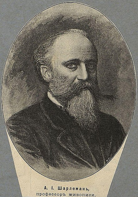 В основном Шарлемань жил в Петербурге. В 1861 году создавал образа по заказам католических церквей. В 1868 году за картину «Екатерина II в мастерской Фальконета» удостоен звания профессора.