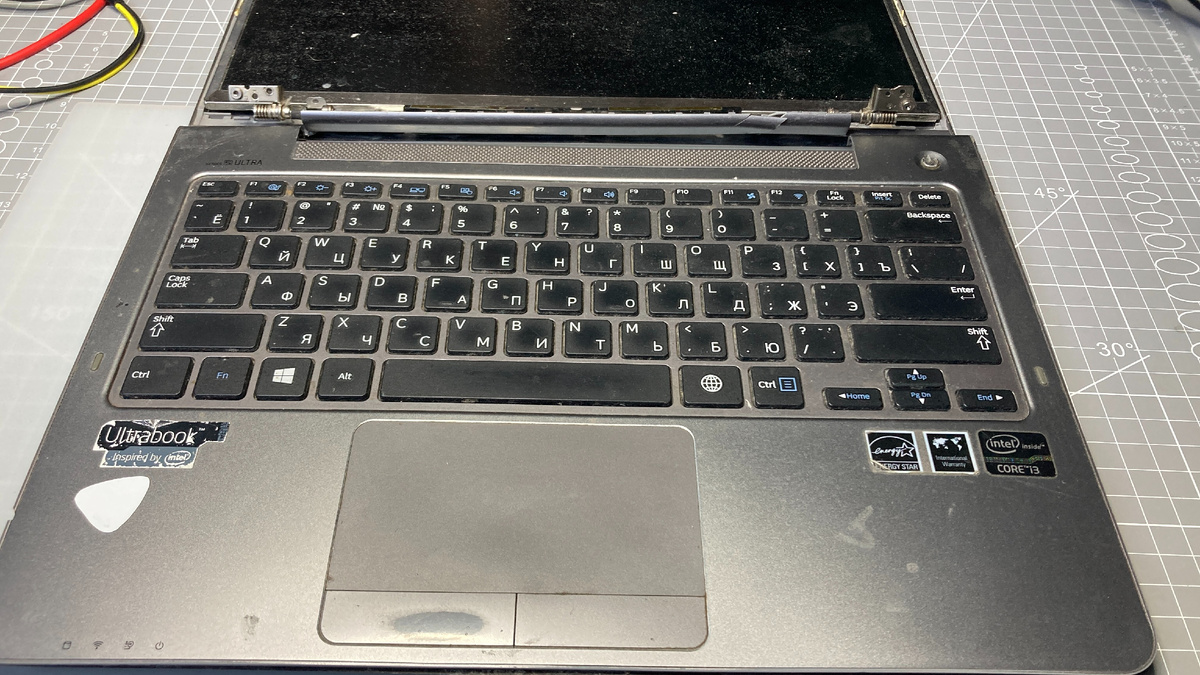 Типовая болезнь этих ультрабуков заключается в сломе крепления петли матрицы на крышке самой матрицы. Не самое удачное решение от компании самсунг, это взять тонкий пластиковый ободок с креплением петель и приклеить его к крышке матрицы.