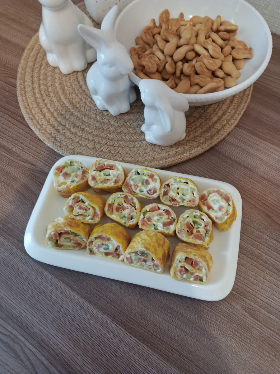 Если у вас осталось немного творожного сыра, что на завтрак для всей семьи его не хватит, то можно приготовить вот такие яичные роллы на скорую руку - хватит всем, и точно все останутся довольны. Итак, нам понадобятся: Каждое яйцо по отдельности слегка взбить с солью и черным перцем. Сковороду смазать растительным маслом, пожарить по очереди три яичных блинчика, жарить по 1-2 минуты с каждой стороны, остудить. Рыбу и огурец нарезать тонкими полосками. Смазать блин творожный сыром, уложить рыбу и огурец и свернуть плотным рулетом. Отправить рулеты в холодильник минут на 30. После нарезать порционными кусочками. Готово! Легкая закуска к завтраку или в дополнение к ужину на быструю руку. Безпройгрышное сочетание сыра, огурца и рыбы делает эти роллы очень вкусными. Приятного аппетита!
