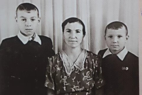 Владимир Арепьев (слева) с мамой и братом Юрой.