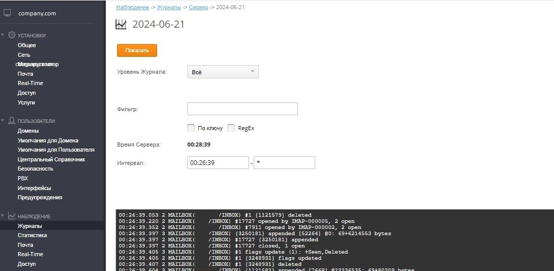 У пользователя могут пропасть все письма в папке INBOX, письма в остальных папках отображаться и открываться будут. При попытке отправить такому пользователю письмо, сервер ответит сообщением: Failed to deliver to '<123@company.com>'
