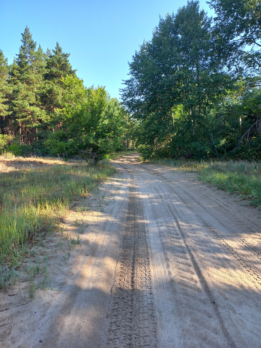 Утром двинулся где пешком, а где верхом по песку через хвойный лес. По карте на пути должен быть брод через Чир. Однако через два часа неожиданно выехал на мост. Ещё час грунтовой дороги и вдруг показалось неотмеченнное на картах пустынное шоссе. Приятная неожиданность! «Ш-ш-швальбе, шшшвальбе…» - довольно зашипели покрышки. Отличный асфальт по горам привёл в посёлок Александровский. За ним – грунтовка по холмам до Севостьянова. Гугл и яндекс-карты несли какую-то чушь и выручил 2ГИС, чётко показывавший все просёлочные повороты в нужном направлении. Повсюду щебетали птицы, бегали суслики, а кристально чистый воздух был насыщен одуряющими запахами трав и цветов.
