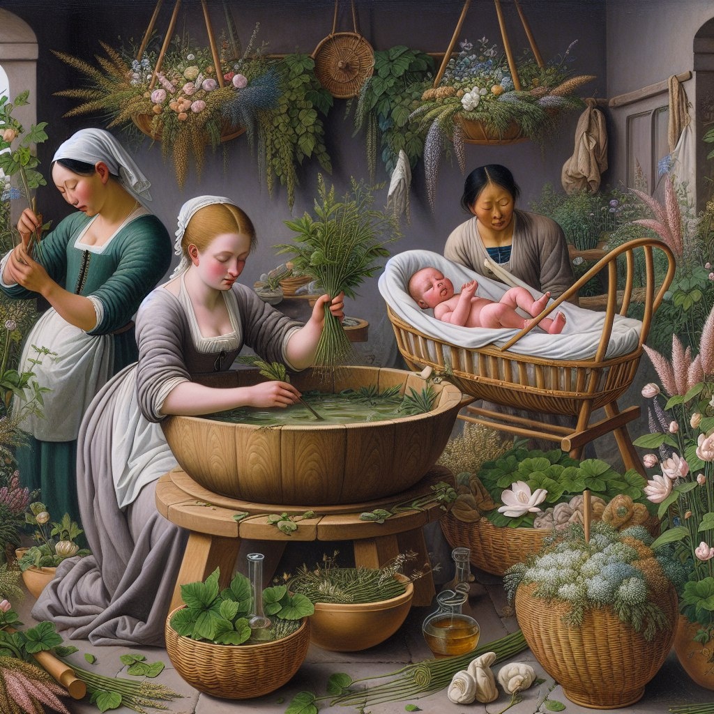 Предварительно происходит заваривание травяного мешочка в большом объеме воды: в большой кастрюле травы доводятся до кипения, но не кипятятся, затем настаиваются для последующего использования в лечебной ванне. Основная цель применения данных трав заключается в улучшении общего состояния здоровья, ускорении процесса восстановления и заживления после родов. Ниже опишу каждую из трав подробнее, суммарно все травы функционально направлены на репарацию (восстановление). 1. Пастушья сумка: Применяется в купелях для облегчения воспалений и улучшения пищеварения. Её противовоспалительные свойства могут помочь уменьшить отечность и улучшить общее состояние кожи. 2. Крапива: Богатый источник витаминов и минералов, крапива в купели помогает укрепить местный иммунитет и улучшить состояние кожи. 3. Таволга: Своими антисептическими и противовоспалительными свойствами таволга в травяной купели способствует заживлению ран и снимает воспаления. Помогает снять аллергические проявления на коже, в случа