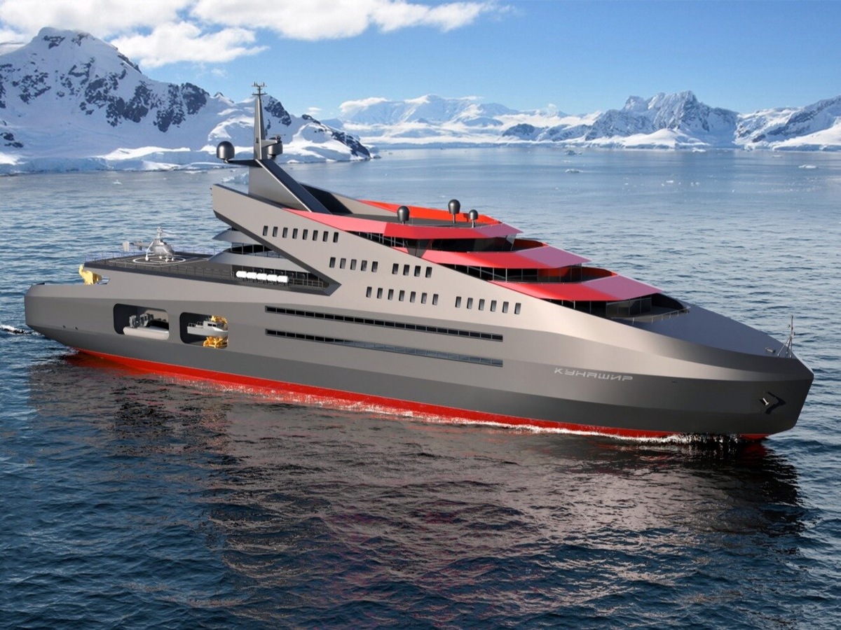 Объединённая строительная корпорация показала прототип нового арктического круизного лайнера «Кунашир». Судно сконструировано по проекту 23550, который используется при кораблестроении для военно-морского флота РФ.