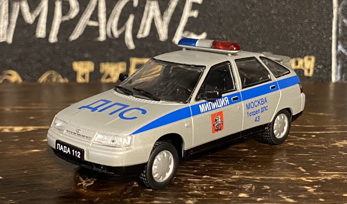 Приветствую, дорогой читатель! Хочу вас поздравить с днем ГАИ! Желаю вам никогда не нарушать пдд, дорог, которые по качеству не уступают немецким автобанам и пусть ваша дорога будет всегда главной! Поскольку сегодня у нас день ГАИ, то и машина у нас будет гаишной, а точнее дорожной постовой службы, но суть от этого не меняется. Встречайте, ВАЗ 2112 ДПС в масштабе 1:43 от DeAgostini в масштабе 1:43. Давайте же начнем рассматривать эту машину, но сначала немного истории. ВАЗ 2112 начали производить в 1998 году. Двенашка была создана на базе седана ВАЗ 2110, производство которого было начато в 1995 году. Также на базе Десятки был создан универсал ВАЗ 2111 в 1997 году. У Двенашки была самая лучшая управляемость среди Десятого семейства. Также, в отличии от Десятки и 111, на Двенашку не устанавливался карбюратор, были только инжекторные модификации. Также в 1998 году ГАИ(Госавтоинспекция) была переименована в ГИБДД(Государственная инспекция безопасности дорожного движения). В 2002 году вышл