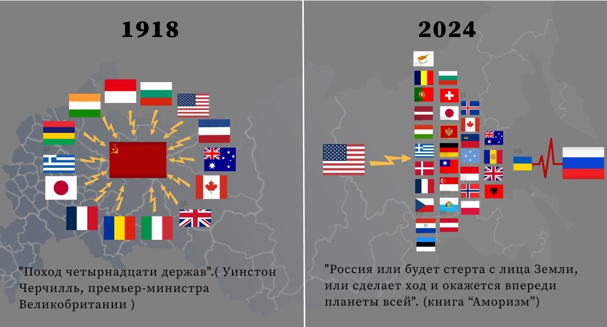Есть три категории людей: Первая категория: люди, чье, благополучие, свобода и жизнь зависит от того, сохранит Россия статус "независимое государство" или потеряет. Вторая категория: люди, у кого ничего не изменится от падения страны. Третья категория: люди, кто от поражения страны получит выгоду. При развале царской России, по выражению Черчилля, Россия пережила нашествие 14 государств. Сегодня 50 стран давят на Россию на военном, экономическом и информационном фронте. Вопрос: кто сильнее настроен защищать страну? Варианты ответа: а) Путин и его ближайшее окружение. (объяснение: в случае поражения России они теряют власть и несут неприемлемые проблемы, и потому защищать Россию и свою свободу с жизнью для них синонимичные понятия) б) Патриоты нового типа, на основе идей, изложенных в книге «Аморизм». (объяснение: заявленные в книге цели достижимы только при независимой России, и потому защищать Россия для них, как защищать корабль, на котором пассажиры плывут к цели). в) Бизнес, сущест