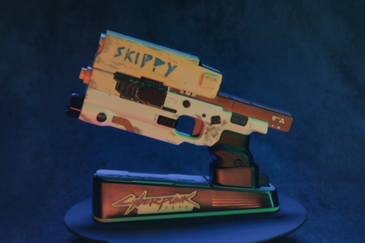 CD Projekt RED совместно с Zing Toys создали точные копии популярного прототипа умного пистолета со встроенным искусственным интеллектом Arasaka HJKE-11 Yukimura "Скиппи" из видеоигры Cyberpunk 2077. "Пацифизм и щеночки" или "Хладнокровный убийца"? Выбирать только вам. Станьте его исходным владельцем! Ствол светится во время стрельбы. Также его можно улучшить при помощи QR-кода, который находится на коробке. Он разблокирует функционал дополнительной реальности и оживит Скиппи. По умолчанию пистолет имеет несколько звуковых байтов из игры Cyberpunk 2077. Размер: 27,305 x 17,78 x 3,175 см. Скиппи имеет встроенную функцию активации голосом. Светящаяся подставка является зарядной станцией.