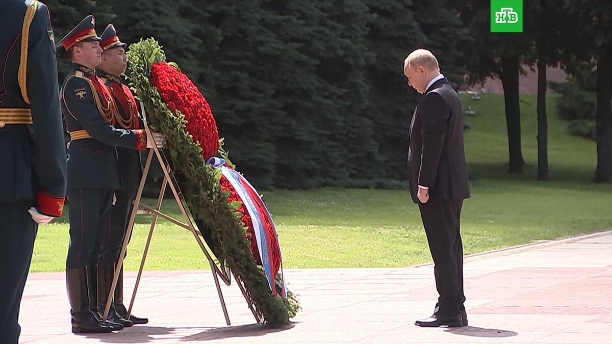 [ Смотреть видео на сайте НТВ ] Владимир Путин в День памяти и скорби возложил венок к Могиле Неизвестного Солдата. Владимир Путин в годовщину начала Великой Отечественной войны возложил венок к Могиле Неизвестного Солдата. Церемония прошла в Александровском саду. В ней также приняли участие министр обороны Андрей Белоусов, ветераны боевых действий, военнослужащие, выпускники военных вузов. Сегодня в России вспоминают героев Великой Отечественной войны. По всей стране проходят акции — люди приносят цветы к мемориалам, зажигают лампады и свечи. [ Смотреть видео на сайте НТВ ]