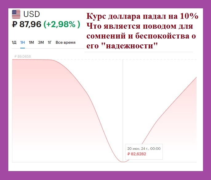 2) Курс доллара упал на 10%, до отметки 82,63 руб/$.