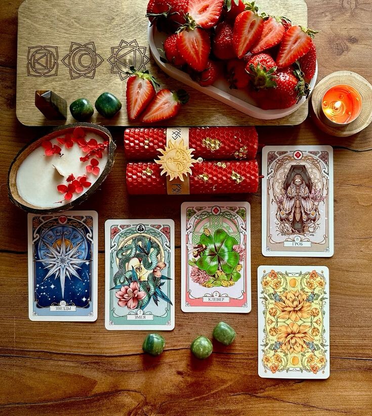 Приветствую вас, дорогие мои! Сегодня решила сделать для вас расклад на самое главное и яркое событие лета. Посмотрим, что запомнится больше всего. Прошу учесть, что расклад общий, вам стоит переложить все что говорят карты на вашу ситуацию. И давайте начнем: Вам на главное событие лета выпал Старший Аркан Дьявол. Эта карта говорит о соблазнах, искушениях вплоть до зависимостей. Дьявол, это обязательства, которые сковывают и ограничивают. Не зря Дьявол может показать и неистовую страсть, и брак, и долги. В личной жизни Дьявол это горячие, страстные отношения, но бойтесь соблазна подчинить человека и завладеть им полностью. Дьявол может говорить о ревности. Иногда карта говорит о искушении большими деньгами. Но в любом случае какие то обязательства, привязки, зависимости могут влиять на вас этим летом. Именно они будут выводить вас из равновесия, и вызывать тревогу. Возможно вы и сами не в состоянии объяснить себе ваше внутреннее состояние, которое ведет к бессоннице и депрессии. 9 ме