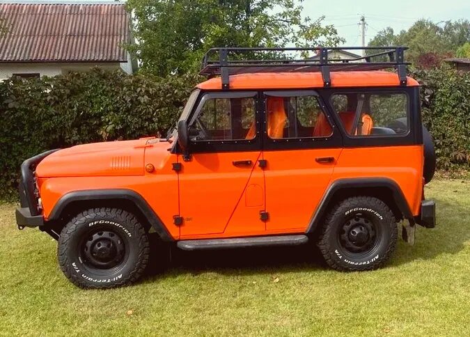 Внешний облик изменился, но не намного. Наконец-то перекрасили из защитного в симпатичный апельсиново-оранжевый цвет. Добавили что-то типа кенгурятника и багажника на крышу. Очень удобно, если требуется забраться на крышу или покопаться в моторе. Кое-где на окнах появился пластик, но на классику дизайна это не влияет. Классическая конструкция лонжеронной рамы и рессорная подвеска на заднем мосту только подтверждают тот факт, что УАЗ-469 изначально был спроектирован на совесть. Как ни старались сделать что-то более умное за те же деньги, так и не получилось.