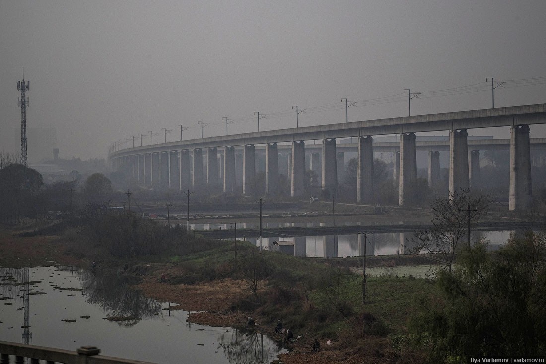33. А вот и прекрасный Ухань, укрытый смогом. Кажется, что сумерки, на самом деле 11 часов утра ;)