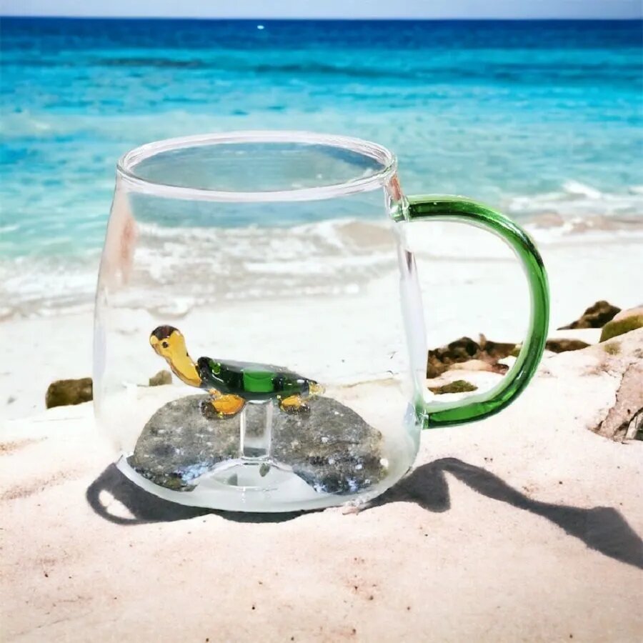 Ну и как пить из такой кружки, скажите мне. На нее ведь только любоваться и мечтать о чем то, например о море! Ведь внутри находится фигурка черепаха. Кружка на 400мл, она из прозрачного стекла и, не сомневаюсь, что стоит очень дорого. На ВБ и в Озоне цена на такую 1200 руб., представляете?