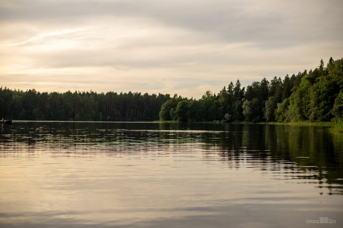 Свято нам очень понравилось: атмосферное, таинственное, с островами и песчаными пляжами. С удовольствием искупались. К соседнему Щучьему озеру ведёт узкая и мелкая протока, она же брод, через который местные ходят на пляжи озера Свято.