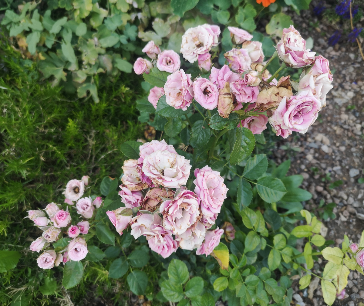 Нет, я, конечно, понимаю, что последнее время делаю много телодвижений только из-за того, что какой-то оттенок розы не совсем совпал с фото. Вот думаю - ну, живут же люди себе спокойно с большими розариями и в ус недуют. Даже на Дзене куча блогов есть, где все оттенки вперемешку и хозяева счастливы. А тут горе, когда холодный розовый оказался не таким холодным, да и вообще.... Нет бы, иди шей, у тебя же крой на столе лежит, так куда там! Лопату в зубы и вперёд! Вот сразу советую - если меня читают такие же больные чувствительные к цветовосприятию, то сажай те свои розы на какие-нибудь выселки, понаблюдайте за оттенками, а потом осенью высаживайте на место... Правда, сегодняшние пересадки были продиктованы немного другими мотивами. Я как-то упоминала свою розу Лавли Лидию Ужас ужасный. Я теперь поняла, чего её мне мама спихнула😁. На тебе, доча, чего мне негоже)))) Честно говоря, она чего-то там меня предупреждала, что её лучше выкинуть, но дареному коню в зубы не смотрят, поэтому б