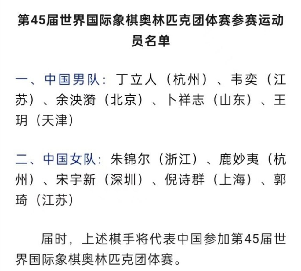 🇨🇳 Так выглядит заявка сборной Китая на шахматную олимпиаду в Венгрии